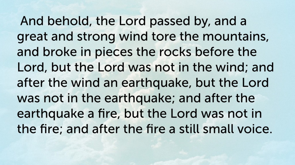 It’s time to stop and listen to God. It’s time we listen to what He is trying to tell us. As we read in the scripture passage below, we need to listen no to the loud noise, but to the quiet voice that is God’s.